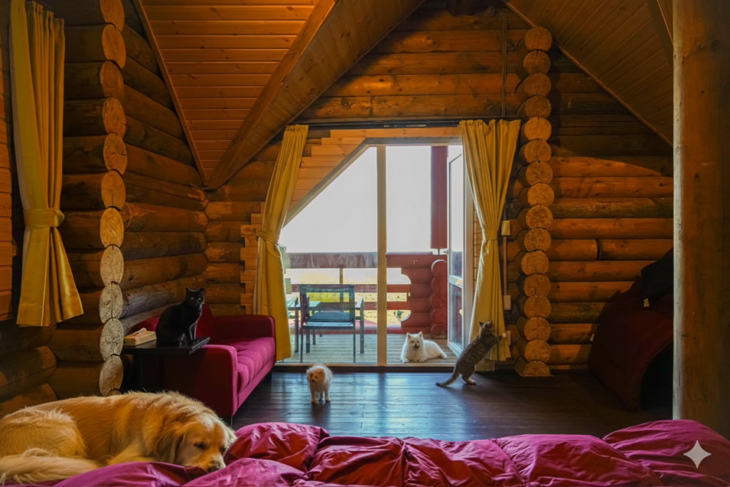 ログハウス内はペットも同泊出来ますので、文字通り「ご家族」の皆様で特別なひと時をお過ごしください。
